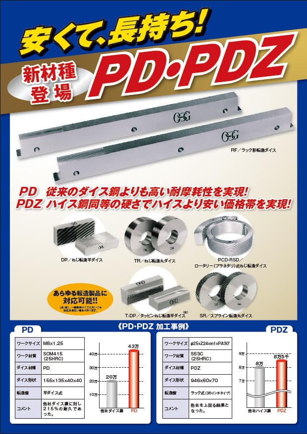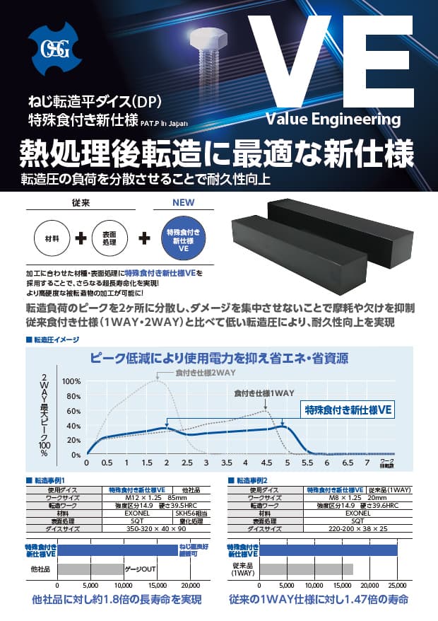 航空機向けボルト、熱処理後転造、強度区分12.9以上の高強度ボルトに最適な、高寿命ダイスを製造しています。