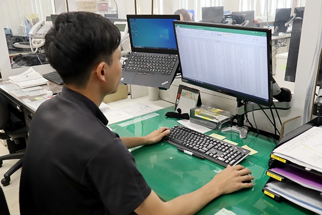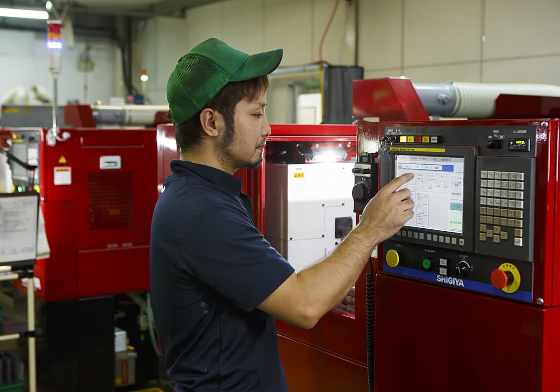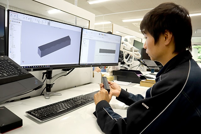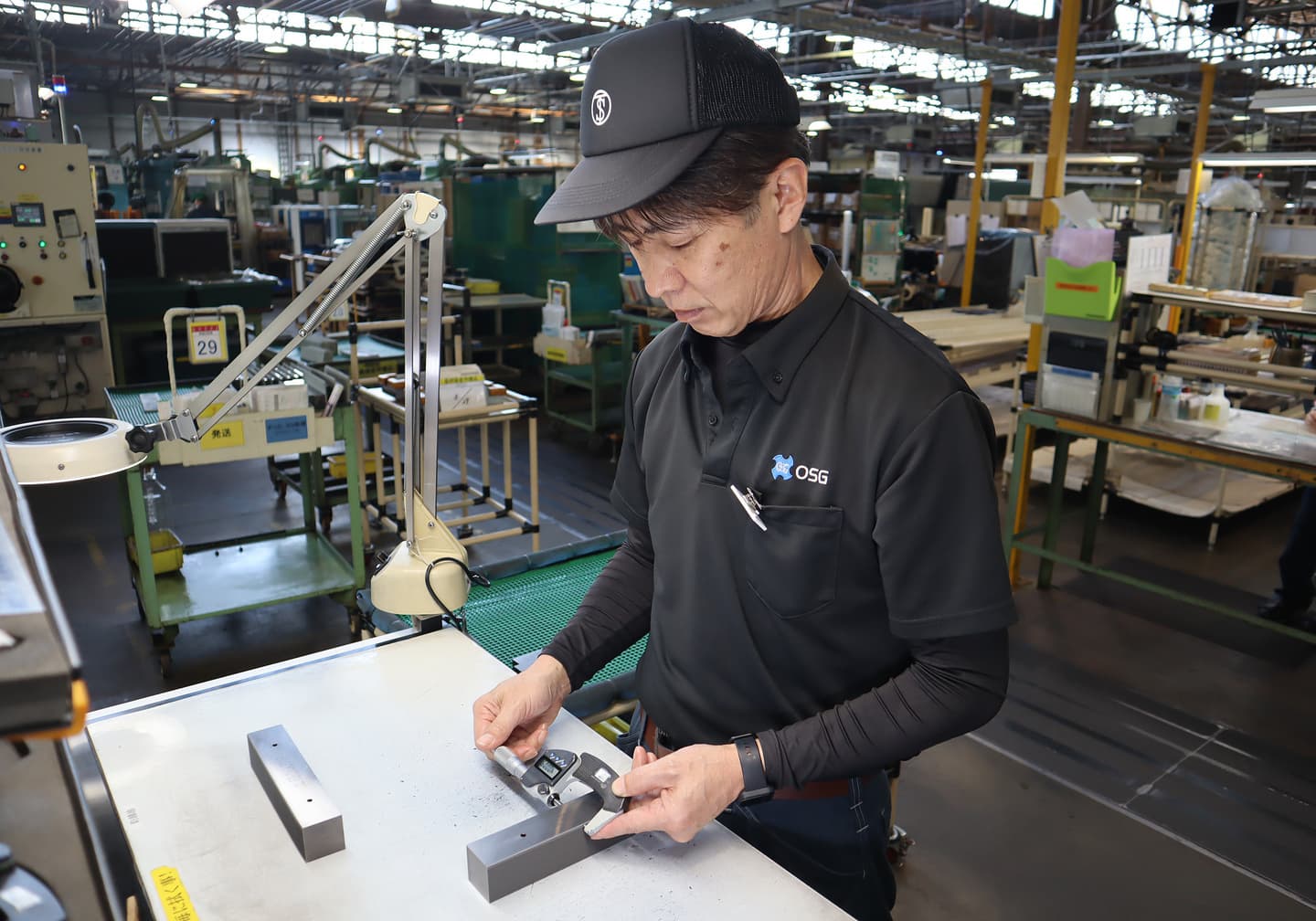 - 研削盤を使用し、工業用の切削工具を製作する。